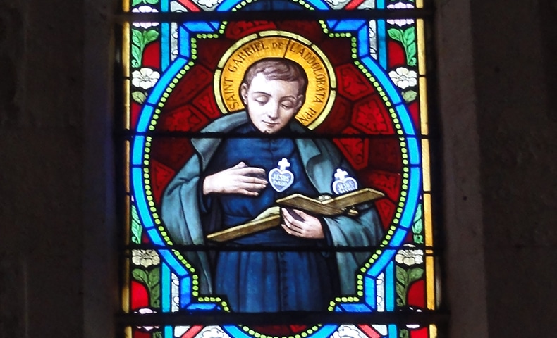 Born in Italy into a large family and baptized Francis, Saint Gabriel lost his mother when he was only four years old. He was educated by the Jesuits and, having been cured twice of serious illnesses, came to believe that God was calling him to the religious life. Young Francis wished to join the Jesuits but was turned down, probably because of his age, not yet 17. Following the death of a sister to cholera, his resolve to enter religious life became even stronger and he was accepted by the Passionists. Upon entering the novitiate he was given the name Gabriel of Our Lady of Sorrows.