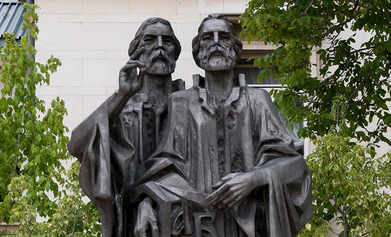 Because their father was an officer in a part of Greece inhabited by many Slavs, these two Greek brothers ultimately became missionaries, teachers, and patrons of the Slavic peoples.
